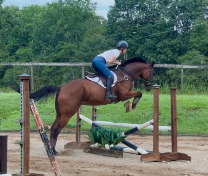 It’s guaranteed that a former racehorse knows how to walk-trot-canter-gallop and do flying changes. They respond to the rider’s shifting weight, rein length, tap from the whip and often clucks and kisses which are all signals to move forward. Often times, people are surprised when they don’t get a reaction when they use their heels against the horse, and then they increase their leg action with kicking the horse to move . . . hence the term “kick-ride”.