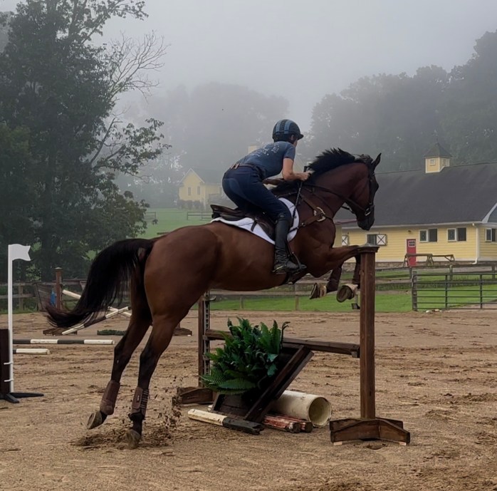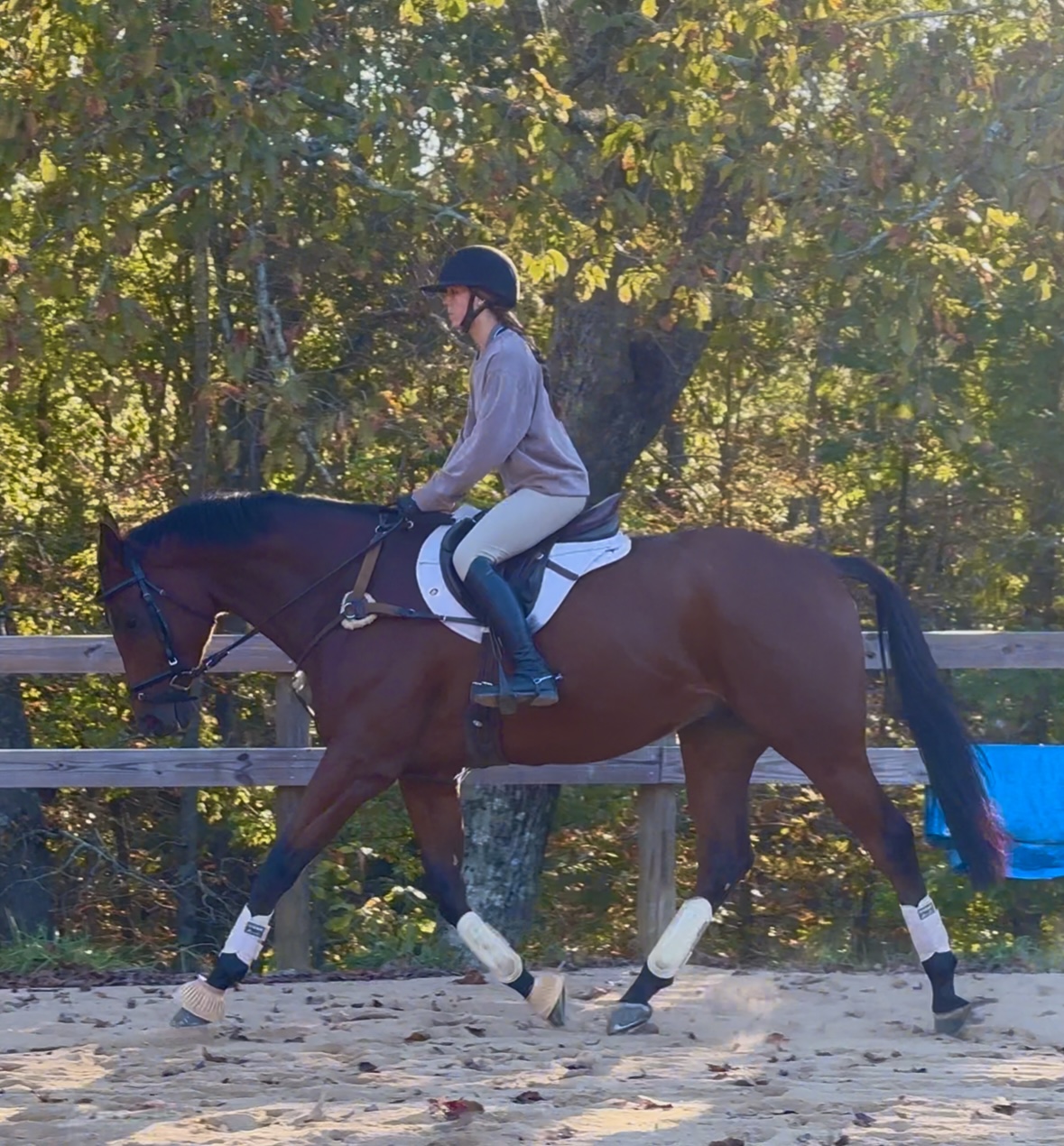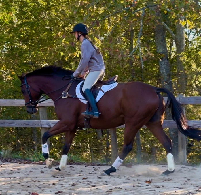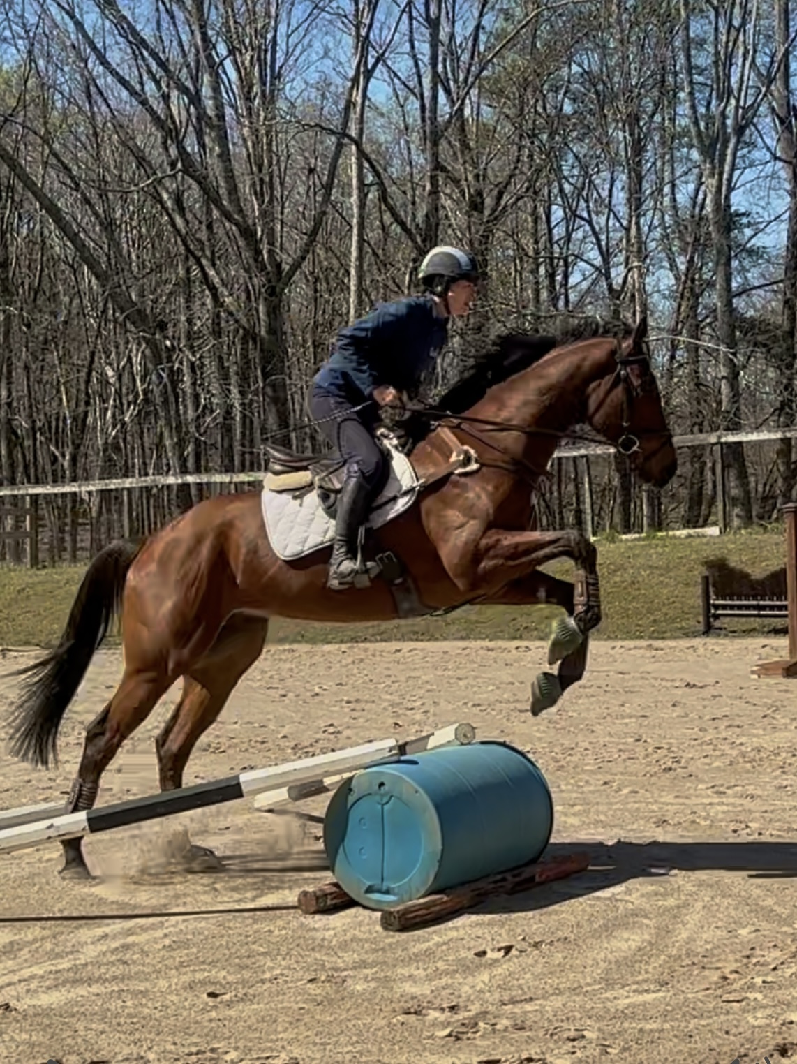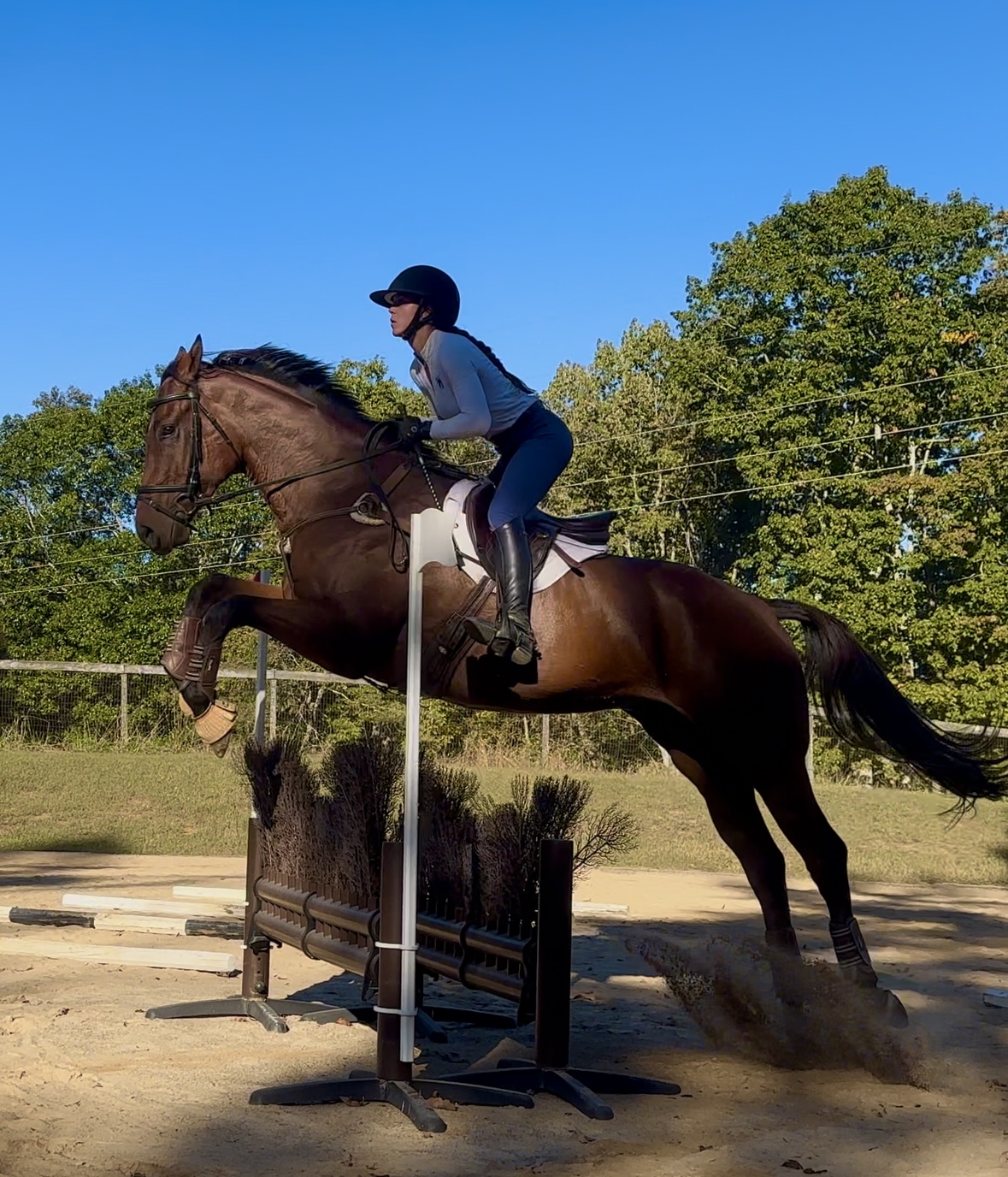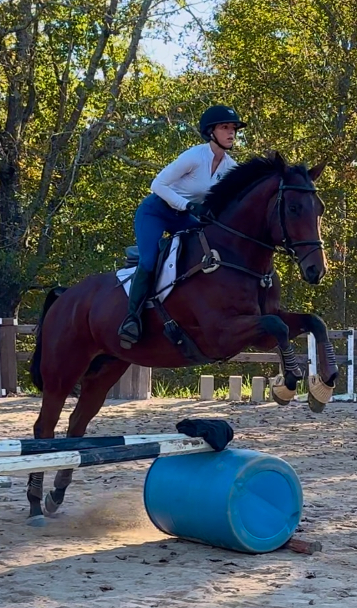 Zero vices and never naughty. Jump schools have been added into Boone’s 2025 schedule and has been a wonderful pupil who enjoys popping over different fences. Currently schooling low, friendly obstacles that builds confidence. He has never offered a stop, never hesitated, never ran out. Boone is calm and quiet at his approaches, lands straight and quiet upon landing away.