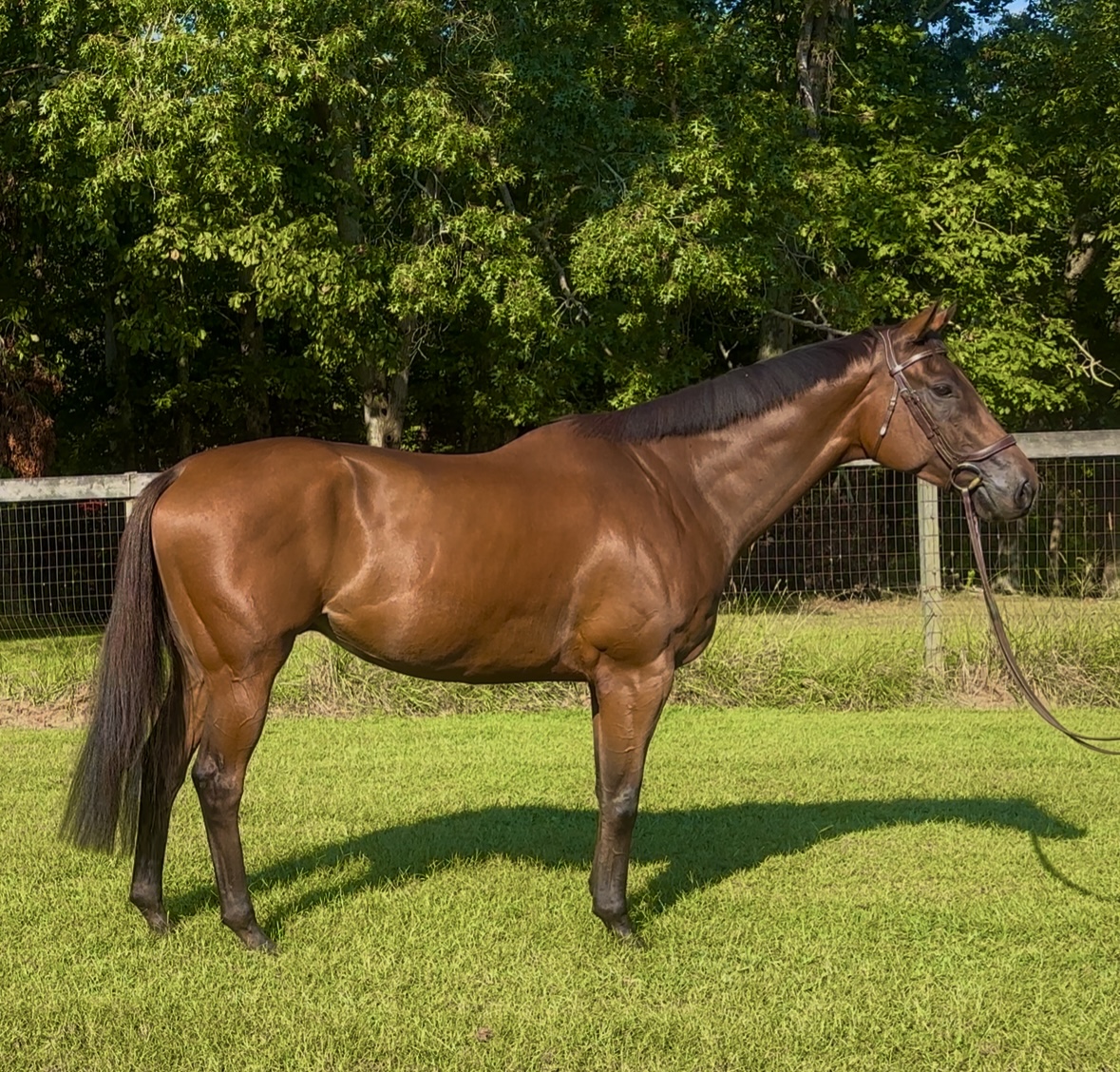 Bundaburg is a bay gelding foaled May 2020 by sire Klimt, and out of She’s Gonna Float. He has finished growing in height and is a solid 17 hands and has been filling out with impressive muscle with a gorgeous neck and nice round hindquarters. Bundaburg has a strong resemblance to his sire Klimt from conformation, color and personality.