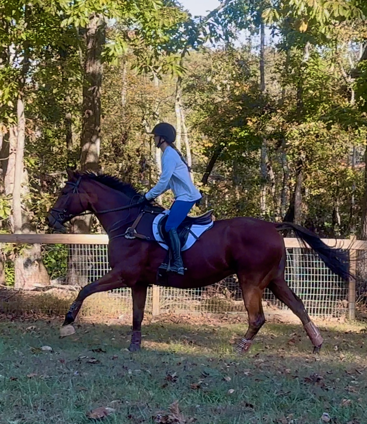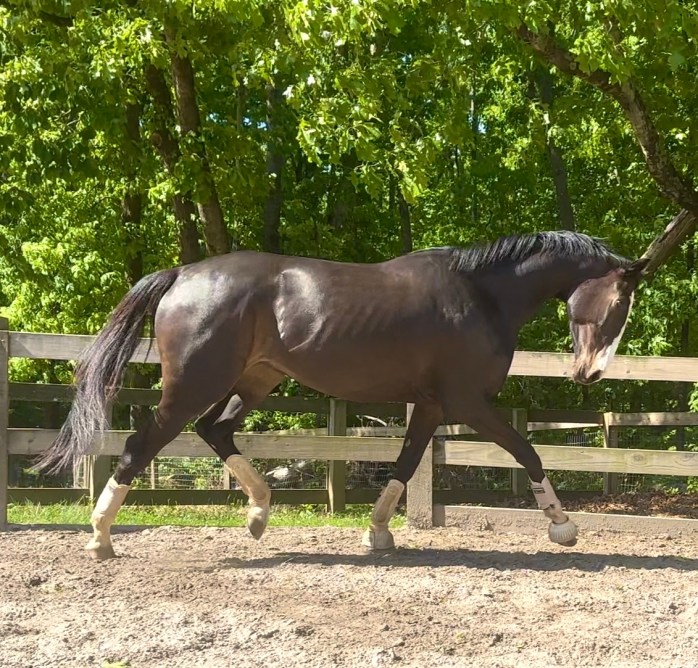 Free rotation of the shoulders and hindquarters that are impressive. Very soft mouth and easily responsive to neck reining and the rider’s pelvis and shoulder placement. Much of his former track training has been applied and continues to be used in his development as a show horse. Quiet and calm personality with a steady-eddy demeanor very suitable for a professional or a Young Rider looking to grow their team of horses. I envision Boone having very competitive scores in the Dressage phase with Judges being very complimentary.